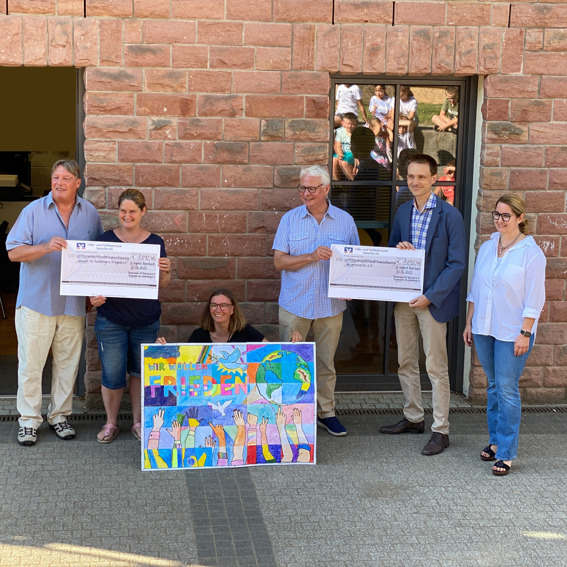<p>„Wir wollen Frieden“ – steht auf einem großen Schild, das die Schüler selbst gestaltet haben. Dass dieser Aufruf nicht reichen würde, war ihnen jedoch klar. So überlegte die Schule, eine Spendenaktion zu starten. Zunächst organisierte die Dependance in Hassel einen Kuchenverkauf. Etwa eine Woche lang wurden in der Pause auf dem Schulhof Kuchen, Gebäck, Brezeln und Obstspieße verkauft, die von den Eltern beigesteuert wurden. Auf diese Weise kamen die ersten 1.500 Euro zusammen.</p>