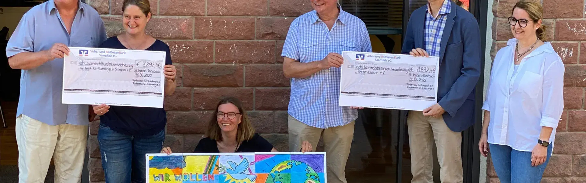<p>BU: v.l.n.r.: Ortsvorsteher Roland Weber, Claudia Schneider, Förderverein Hassel, Veronika Bastian, Thomas Rosch, SR-Herzenssache, Stefan Zähringer, Förderverein Rohrbach, und Konrektorin Petra Röser freuen sich über die unglaubliche Spendensumme.</p>